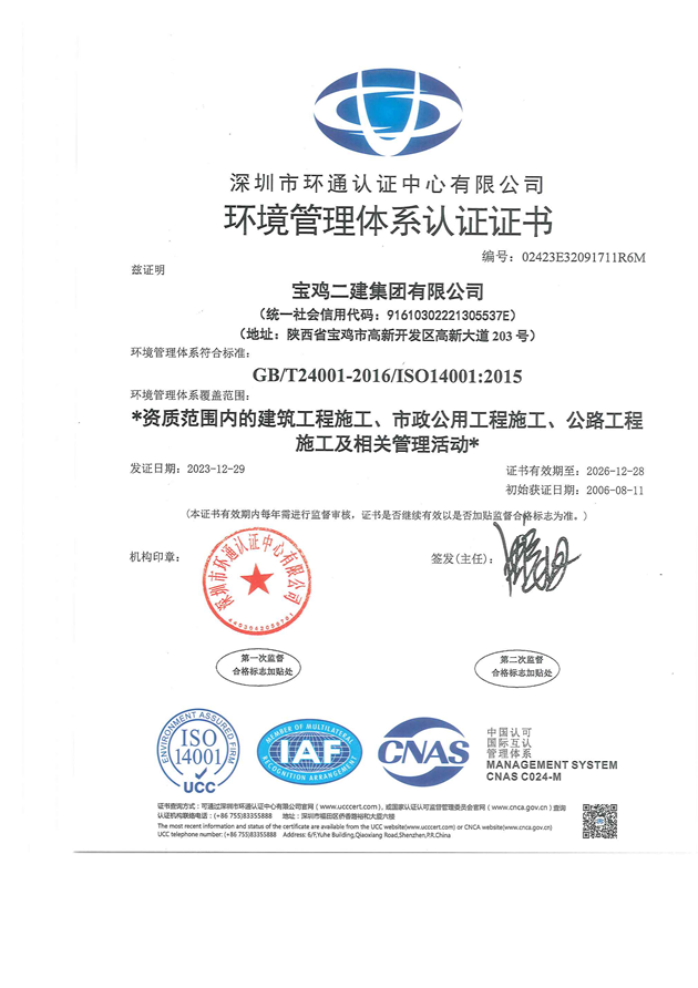環(huán)境管理體系證書(shū)