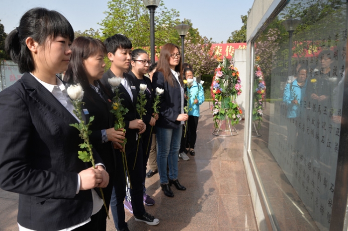 活動中,大家懷著無比崇敬的心情在寶天鐵路英烈紀(jì)念碑前向革命先烈鞠躬致敬、敬獻鮮花、瞻仰紀(jì)念碑,祭掃烈士墓,參觀寶天鐵路英烈紀(jì)念館。