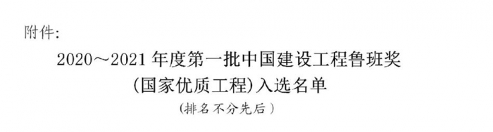2月23日,中國建筑業(yè)協(xié)會公布了2020~2021年度第一批中國建設(shè)工程魯班獎(國家優(yōu)質(zhì)工程)入選名單。