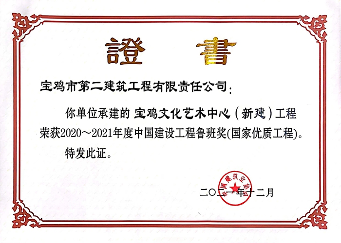 2020~2021年度中國建設工程魯班獎(寶雞文化藝術中心(新建)工程)