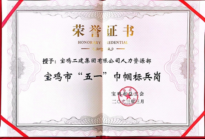 3月8日,在寶雞市總工會召開的第七屆二次女職委全委會上,第十七項目部女職工劉敏被授予“五一巾幗標兵”稱號。集團公司始終為女職工提供干事創(chuàng)業(yè)的廣闊舞臺,多年來,先后有14名女職工獲得各級各類巾幗標兵稱號,2個集體被授予“五一巾幗標兵崗”。