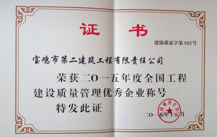 2015年度陜西省工程建設(shè)質(zhì)量管理優(yōu)秀企業(yè)